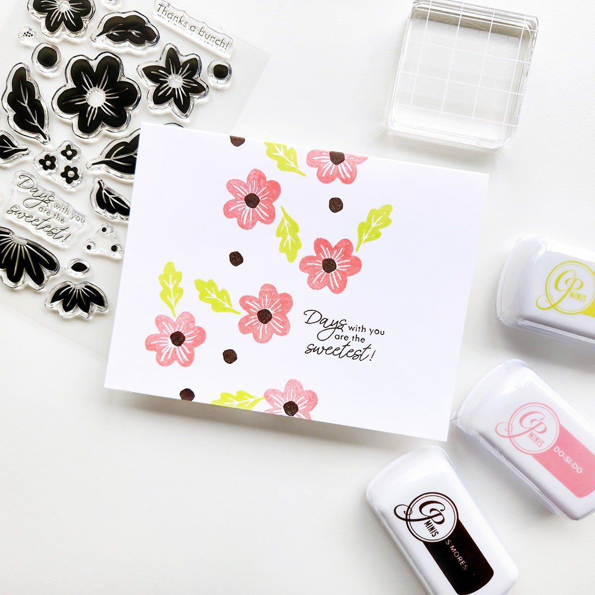 Bring floral and friendship cards to life with this cheerful, garden-inspired kit. Each kit includes a coordinating stamp set, Mini Inks in Do-Si-Do, Limoncello, Melon Ice, and S’mores, plus paper and a stamping block—all neatly bundled in a CP Project Pouch.