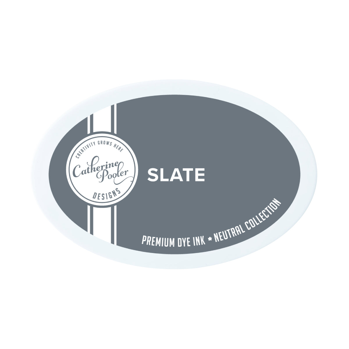 From flooring tiles to garden beds, Slate is a beautiful natural material used to enhance the home and more. This cool, dark shade of Gray Ink has a slight blue undertone and is a beautiful choice for stamping sentiments, accents and beyond!
