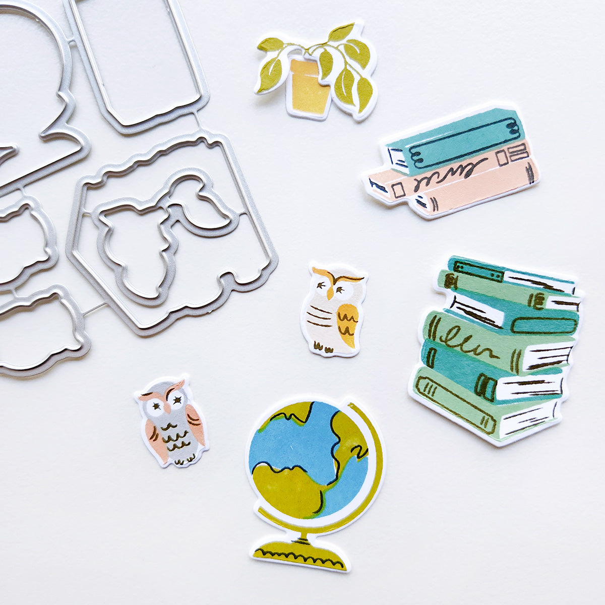 The Good Book Dies are ready to bring your bookshelf scenes to life. Cut out the stacked books, owl bookends, globe, and cozy plant from the coordinating Good Books stamp set to create depth and dimension. These dies make it easy to layer and build charming storybook vignettes—perfect for capturing that warm, cozy feeling of curling up with a good book.