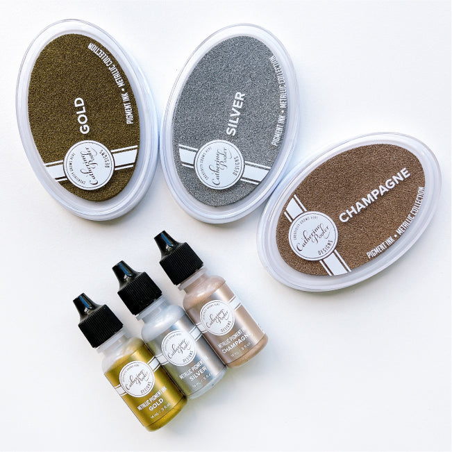 The Metallic Pigment Inks are thick and rich in color. They stamp crisp images and sentiments that shimmer as they catch the light.