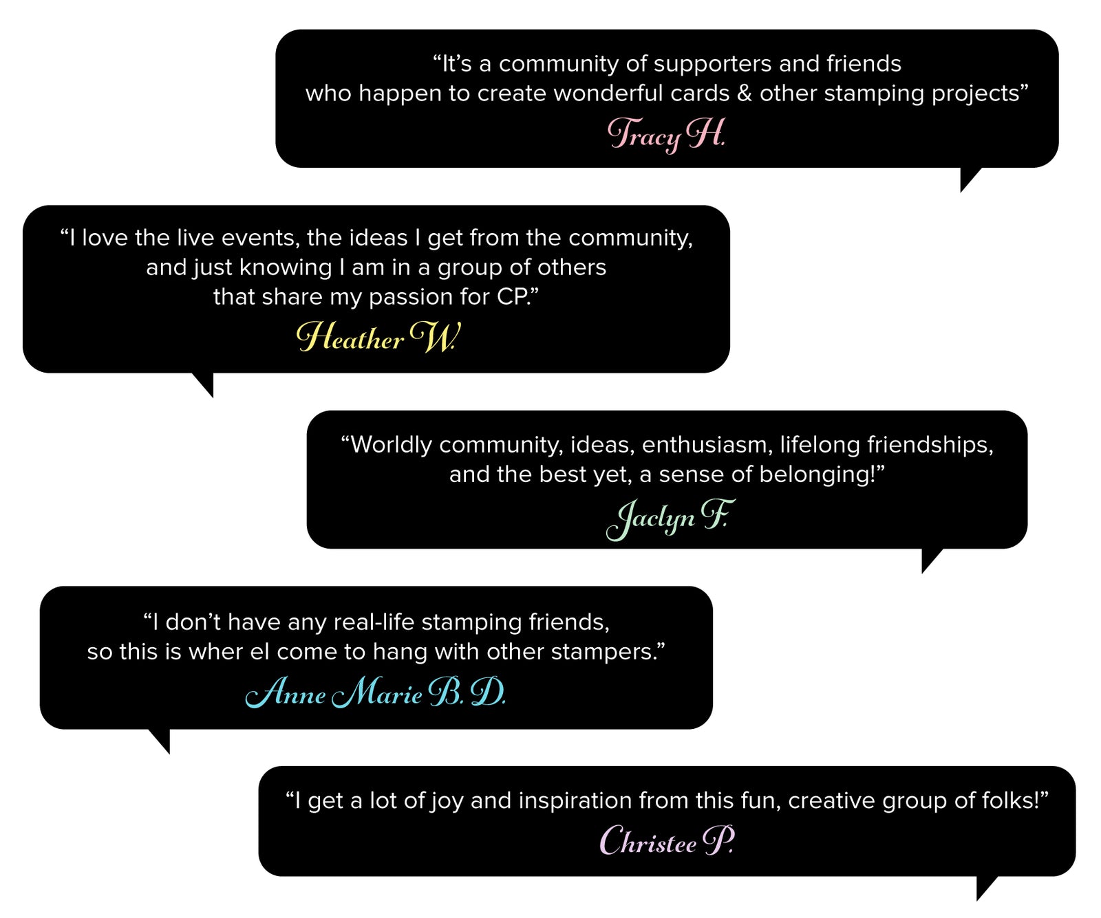 Share your love of papercrafting with a global community of crafty kindred spirits! Enjoy exclusive classes, promotions, and quarterly events.