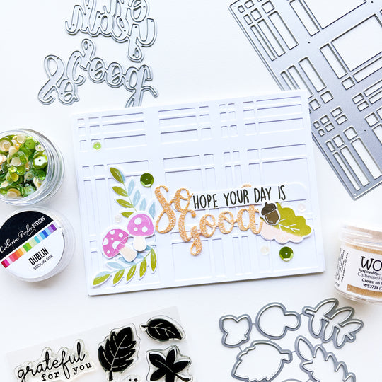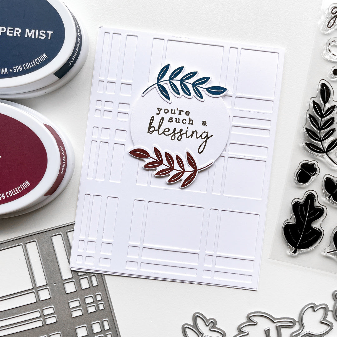 The Criss Cross Applesauce Cover Plate reminds us of hand-made lattice on an apple pie crust or maybe the pattern on your grandad's autumn flannel shirt! No matter what vibes it gives you, this asymmetrical criss-crossed line cover plate is ready to bring the interest and texture to your card's background. Try ink blending over it as a stencil too!