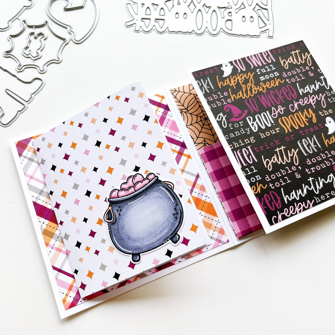 Bubble up the fun with the Toil & Trouble Dies. These dies coordinate with the Toil & Trouble Stamp Set to cut out the cauldron, legs, ghost, spider web and witches hat for all your spooky cards this season.